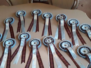 High-quality personalised rosettes, simple ordering, email us what you have in mind.